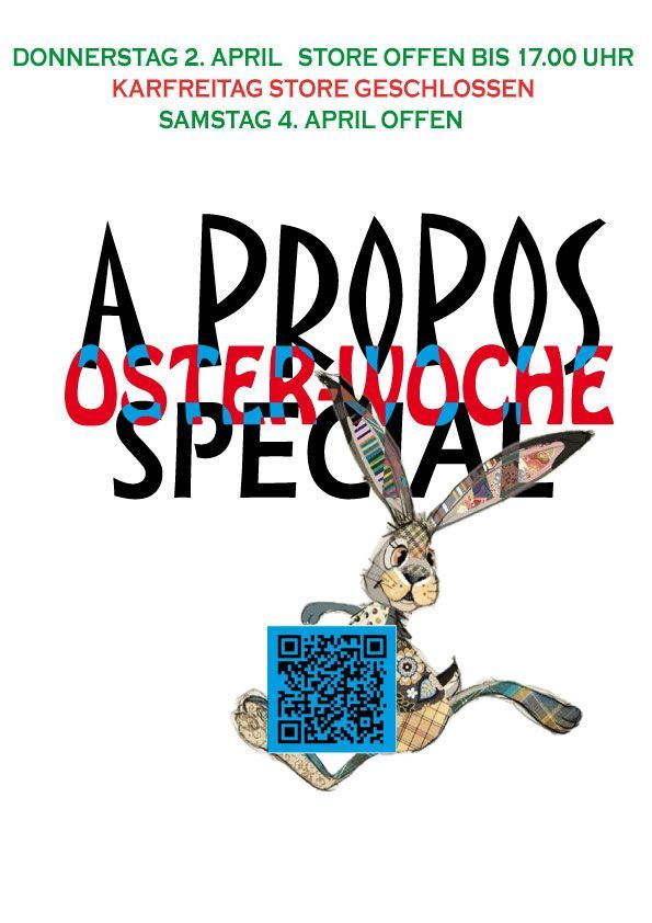 OSTER-WOCHE SPECIAL ( Montag 30. März bis Montag 6. April ) 20% Rabatt im A PROPOS e-shop / NUR im A PROPOS e-shop